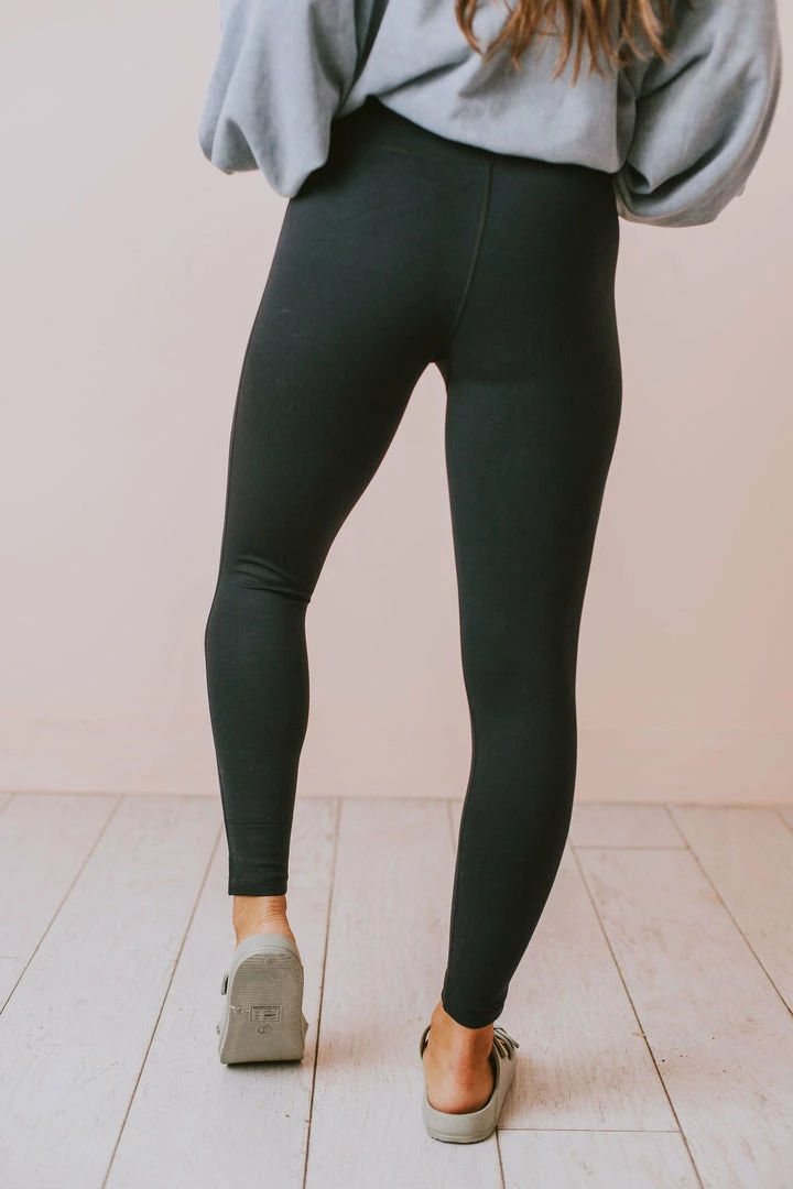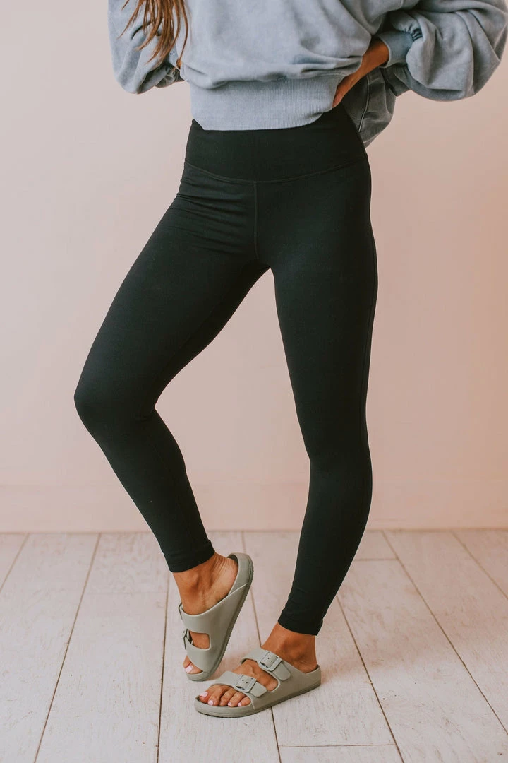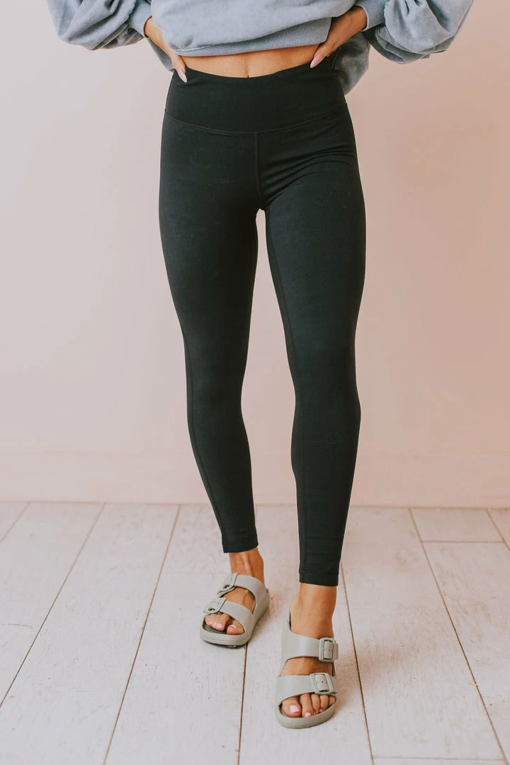Lucy Avenue High Waisted Lycra-Blend Essential Leggings Black